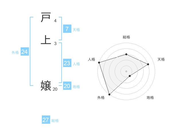 戸上 嬢さんを姓名の画数から五運を鑑定