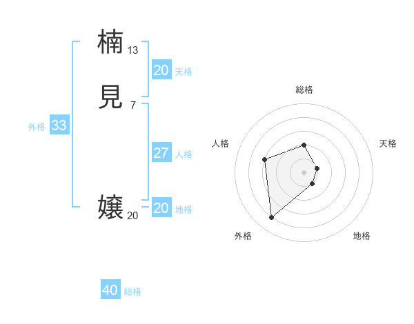 楠見 嬢さんを姓名の画数から五運を鑑定