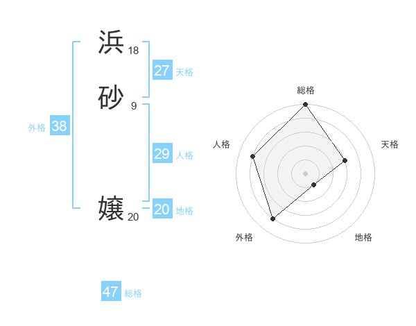 浜砂 嬢さんの総格は47画の5点!