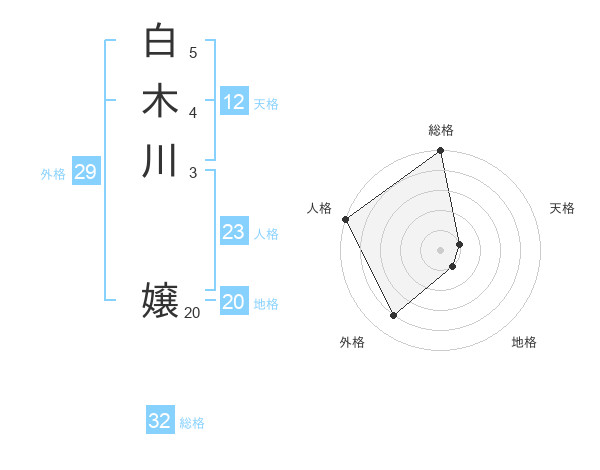 白木川 嬢さんを姓名の画数から五運を鑑定
