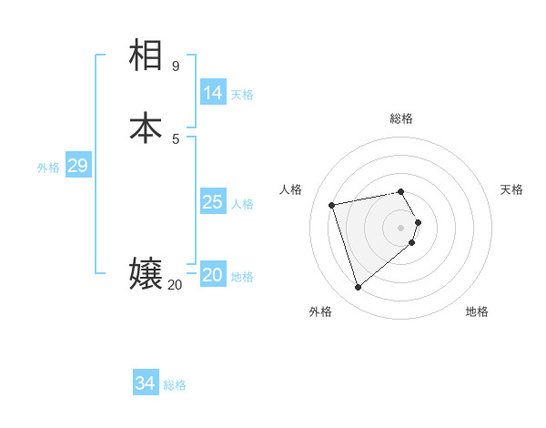 相本 嬢さんの総格は34画の2点!