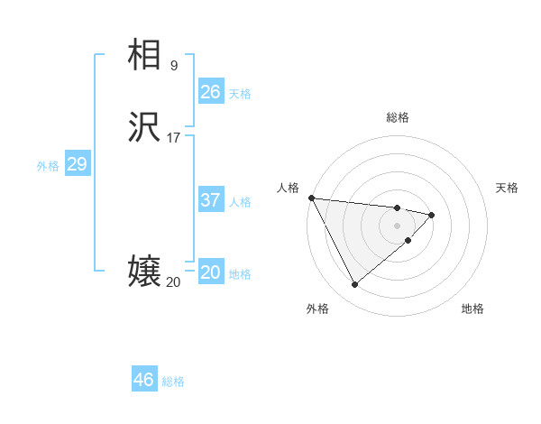 相沢 嬢さんの地格は20画の1点!