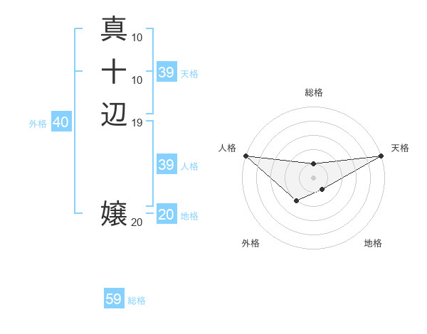 真十辺 嬢さんの天格は39画の5点!