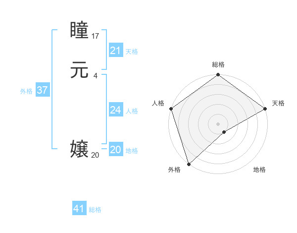瞳元 嬢さんの外格は37画の5点!
