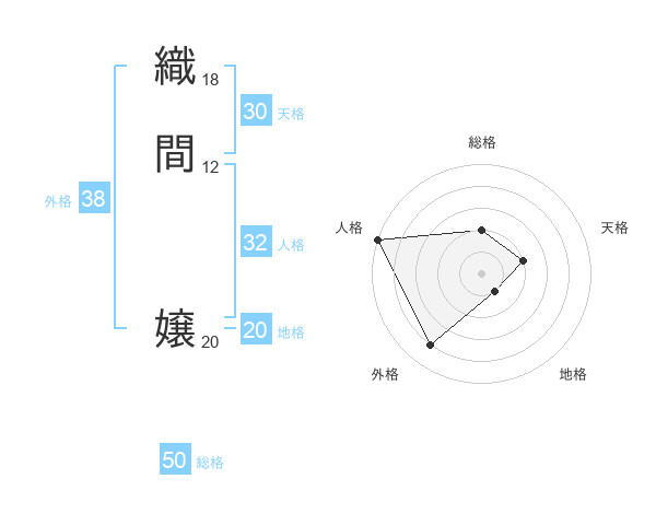 織間 嬢さんの総格は50画の2点!