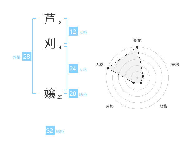 芦刈 嬢さんの総格は32画の5点!