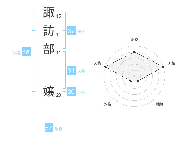 諏訪部 嬢さんを姓名の画数から五運を鑑定