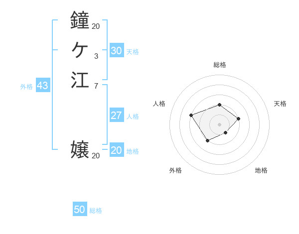 鐘ケ江 嬢さんを姓名の画数から五運を鑑定