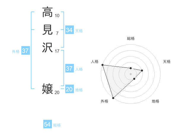 高見沢 嬢さんの外格は37画の5点!