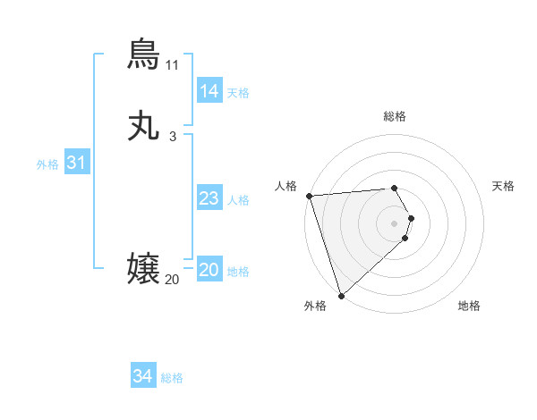 鳥丸 嬢さんの外格は31画の5点!