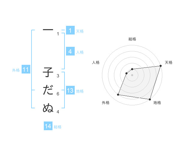 一 子だぬさんの総格は14画の1点!