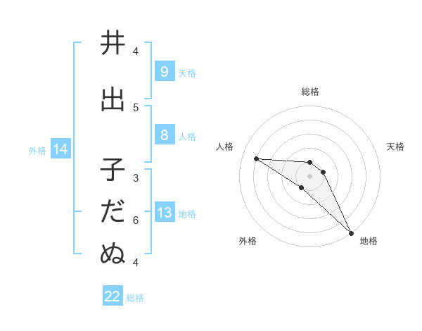 井出 子だぬさんを姓名の画数から五運を鑑定