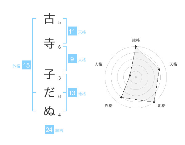 古寺 子だぬさんの総格は24画の5点!