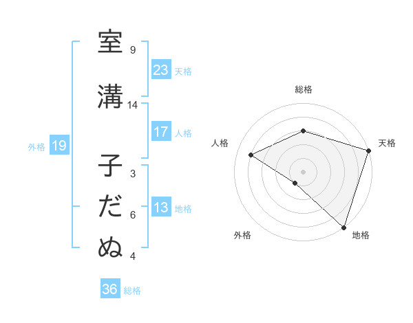 室溝 子だぬさんの外格は19画の1点!