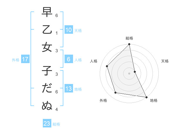 早乙女 子だぬさんの総格は23画の5点!