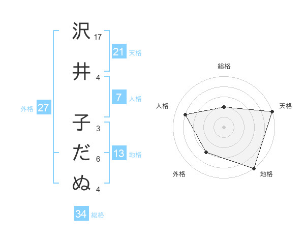 沢井 子だぬさんを姓名の画数から五運を鑑定