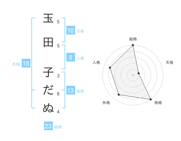 玉田 子だぬさんを姓名の画数から五運を鑑定