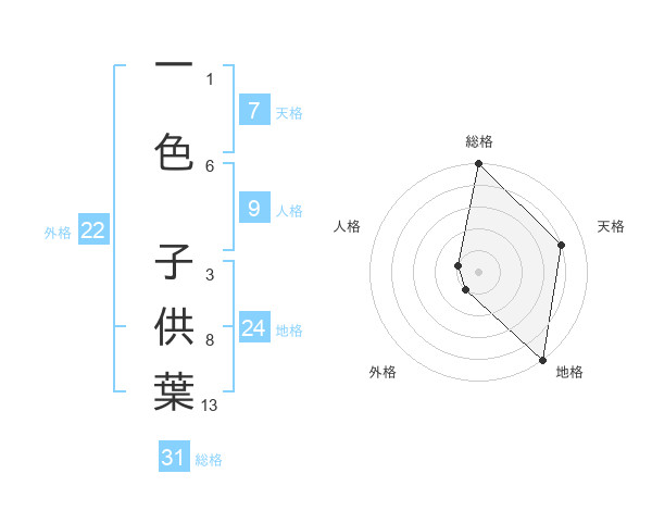 一色 子供葉さんを姓名の画数から五運を鑑定