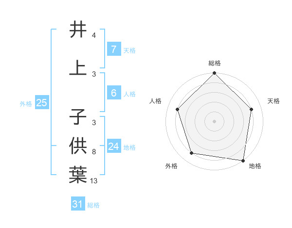 井上 子供葉さんを姓名の画数から五運を鑑定