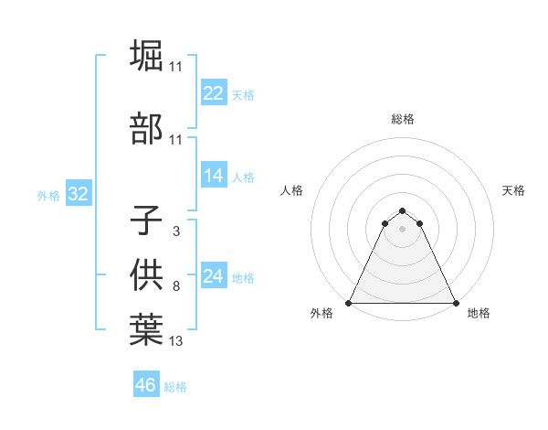 堀部 子供葉さんを姓名の画数から五運を鑑定