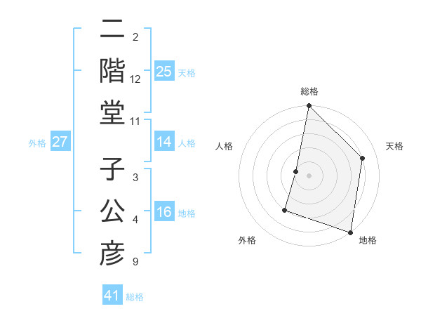 二階堂 子公彦さんの外格は27画の3点!