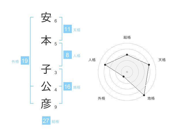 安本 子公彦さんを姓名の画数から五運を鑑定