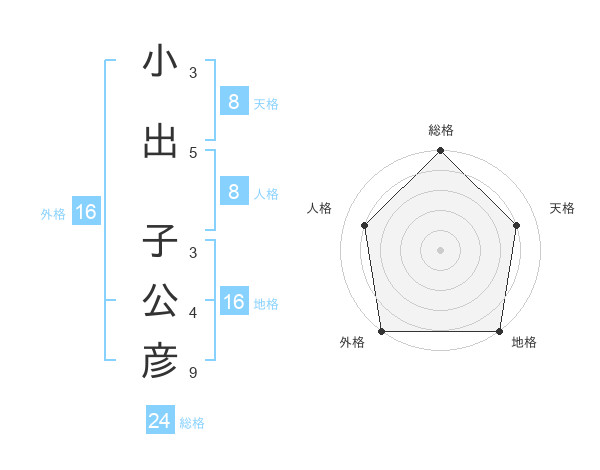 小出 子公彦さんの外格は16画の5点!