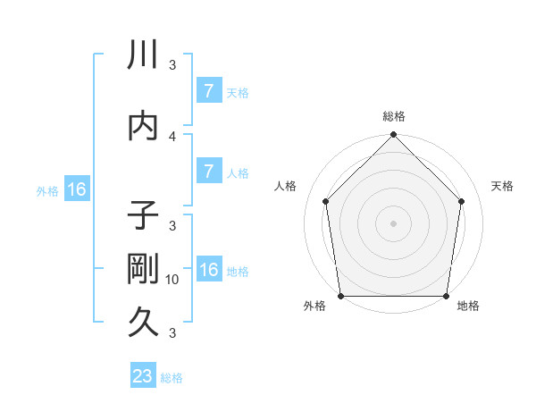 川内 子剛久さんの総格は23画の5点!