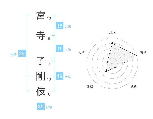 宮寺 子剛伎さんの天格は16画の5点!