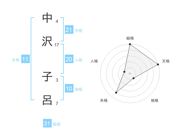 中沢 子呂さんの総格は31画の5点!