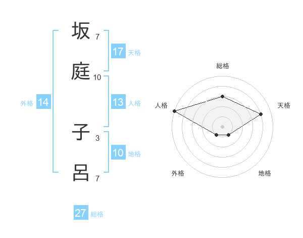 坂庭 子呂さんの総格は27画の3点!