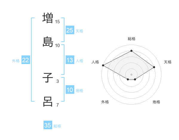 増島 子呂さんの総格は35画の4点!