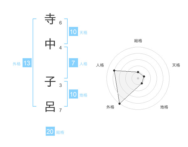寺中 子呂さんの外格は13画の5点!