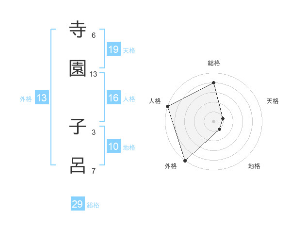 寺園 子呂さんを姓名の画数から五運を鑑定