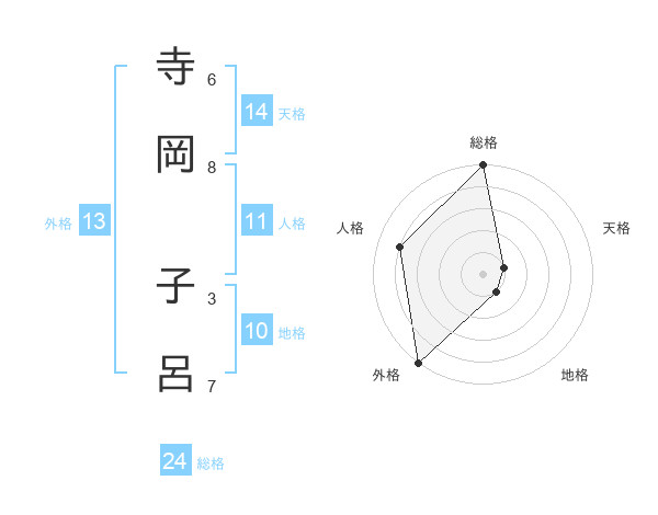 寺岡 子呂さんを姓名の画数から五運を鑑定