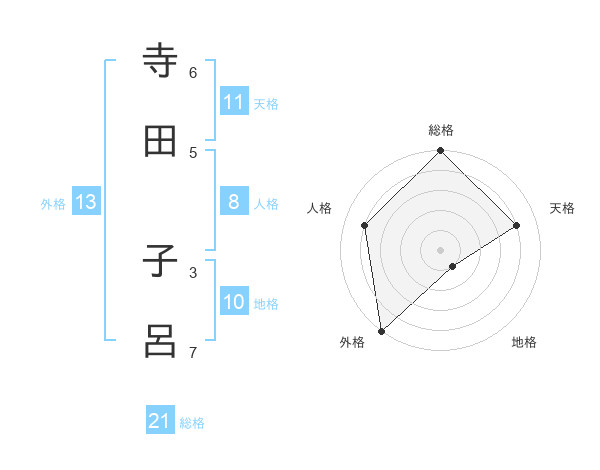 寺田 子呂さんの外格は13画の5点!