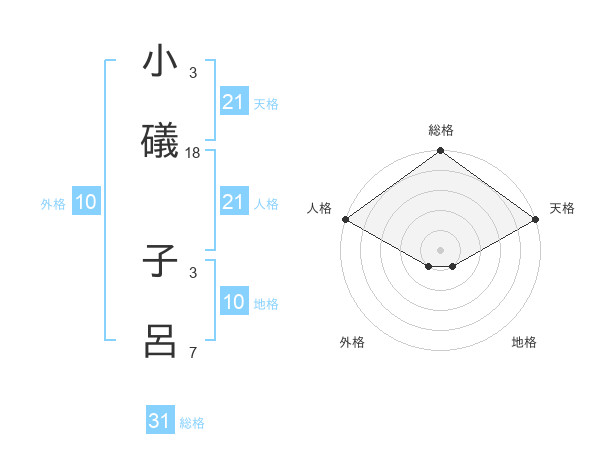 小礒 子呂さんを姓名の画数から五運を鑑定