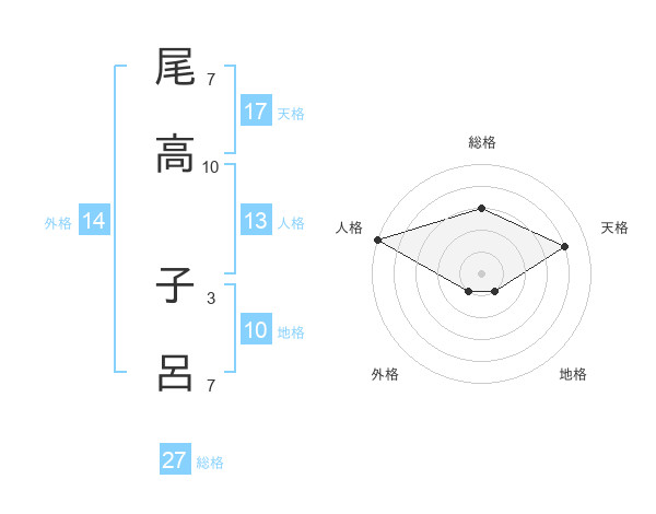 尾高 子呂さんの天格は17画の4点!