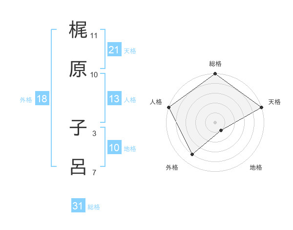 梶原 子呂さんの総格は31画の5点!
