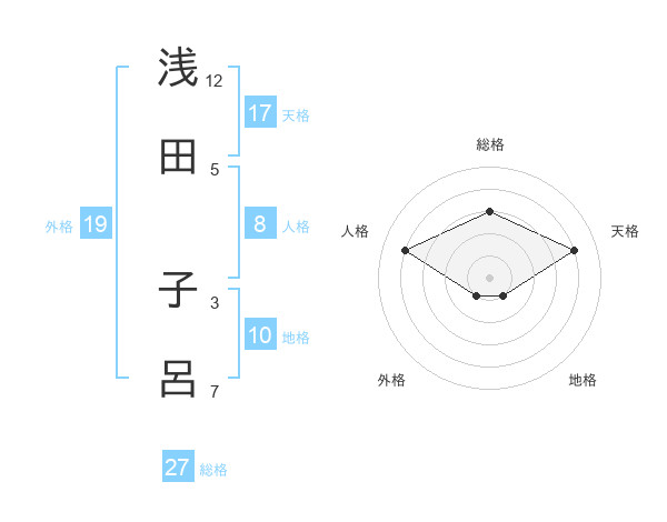 浅田 子呂さんの総格は27画の3点!