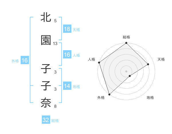 北園 子子奈さんを姓名の画数から五運を鑑定
