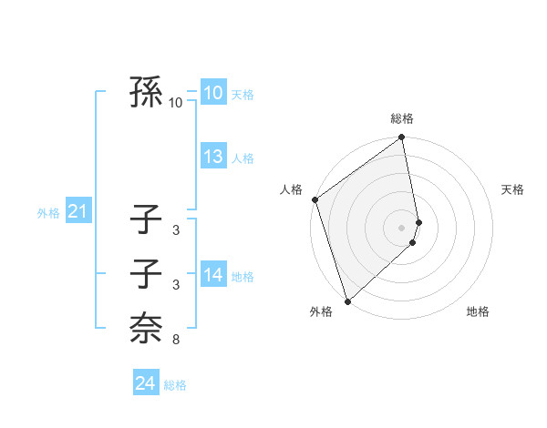 孫 子子奈さんを姓名の画数から五運を鑑定