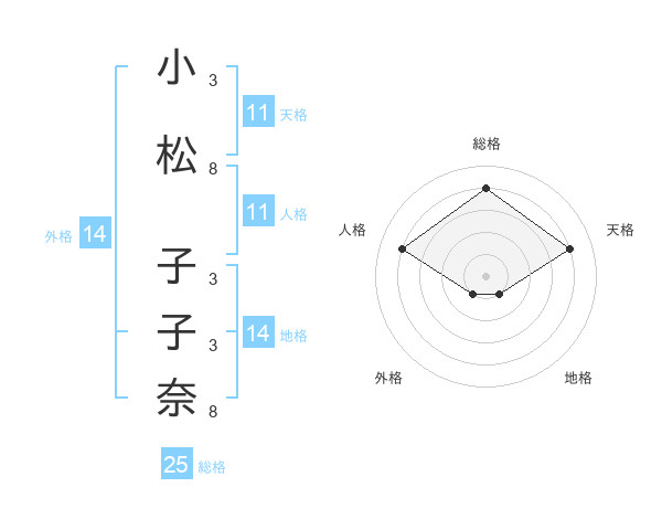 小松 子子奈さんを姓名の画数から五運を鑑定