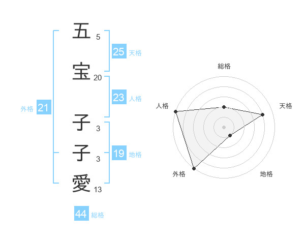 五宝 子子愛さんを姓名の画数から五運を鑑定