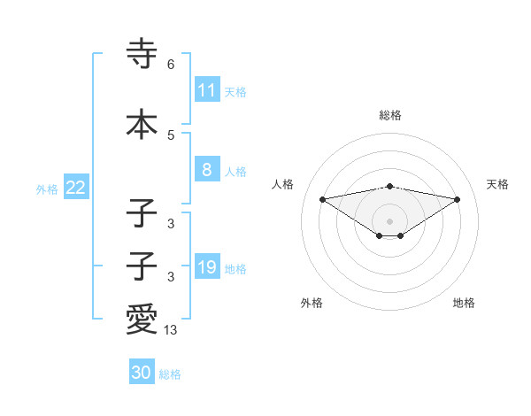 寺本 子子愛さんの外格は22画の1点!