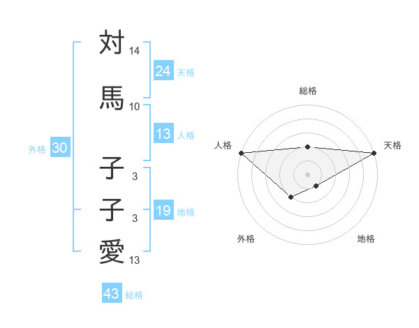 対馬 子子愛さんを姓名の画数から五運を鑑定