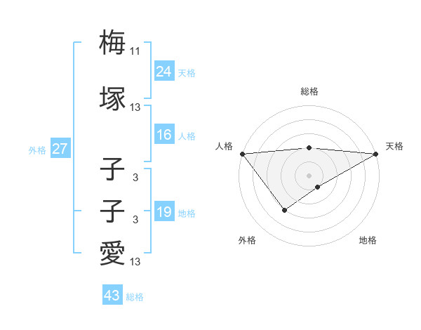 梅塚 子子愛さんを姓名の画数から五運を鑑定
