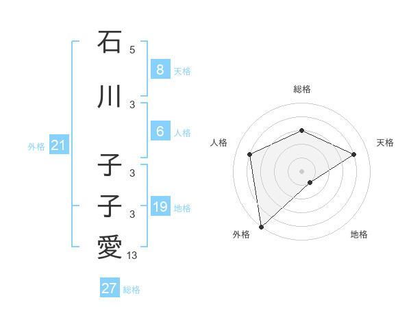 石川 子子愛さんを姓名の画数から五運を鑑定