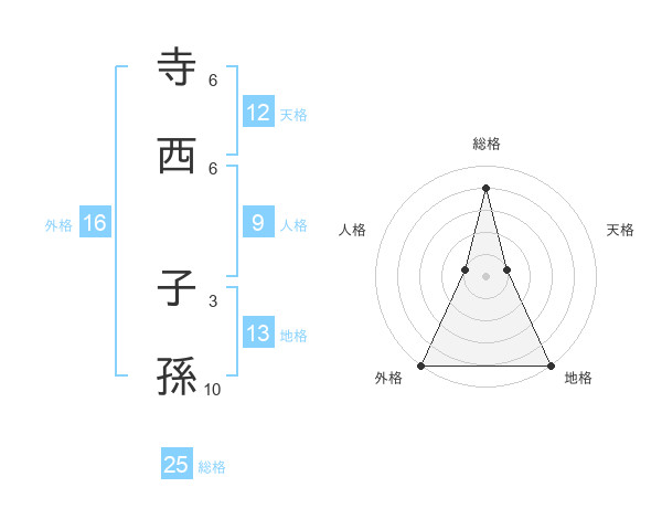 寺西 子孫さんを姓名の画数から五運を鑑定