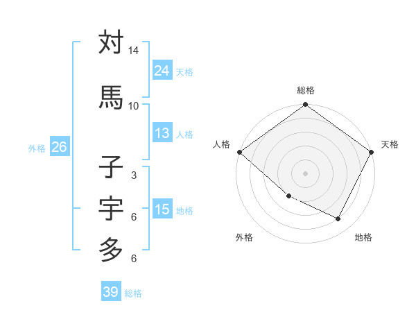 対馬 子宇多さんを姓名の画数から五運を鑑定